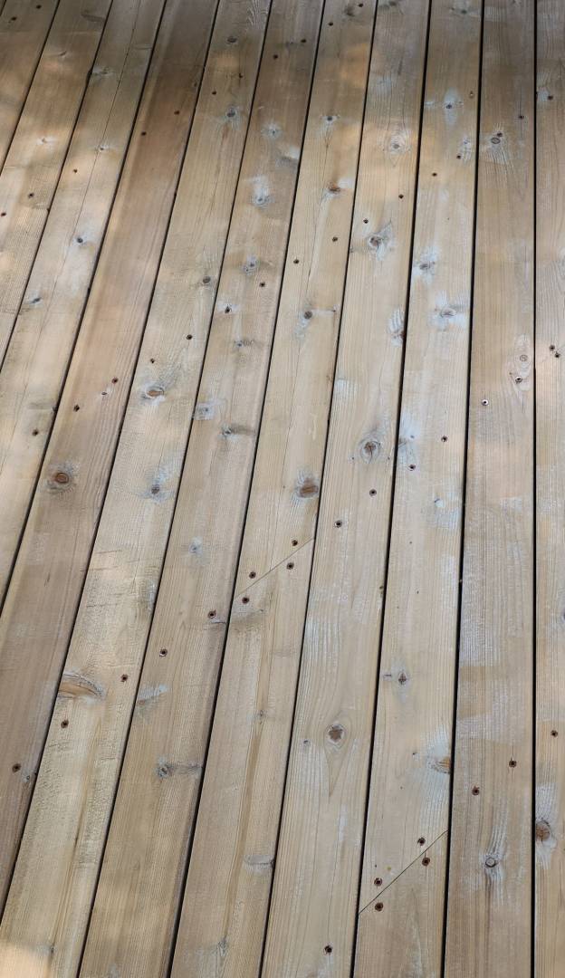 We then had to hire someone to sand when it dried to try to correct some of the splitting, splintering,  gouging, and furring. Then rinsed and let dry. It’s been more than 4 weeks now, and deck floor boards are graying. I just looked again and there is the presence of mold in crannies and undersides of hand-rails that was never removed in spite of the overly aggressive approach to cleaning most of our deck.