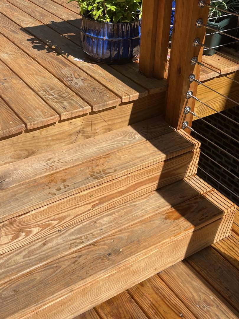 Hello and thx for any advice you can give. We had our deck completed August 2021 and the contractor never stained it until July 2022. Well the day after staining part of the deck had black spots, streaks etc. The stainer came back out and sanded it down and reapplied- now the deck is two different colors and I don't even know if the untouched area has enough stain coverage? We did have our posts stained a darker color than everything else but i can't tell if he used the post color on the floor? Or if this color is bc of two coats?!? And some beads water and the other is bone dry- just very odd... To make things worse the black "mold?" is not all gone. Do we need to have this redone? Any and all guidance would be appreciated.