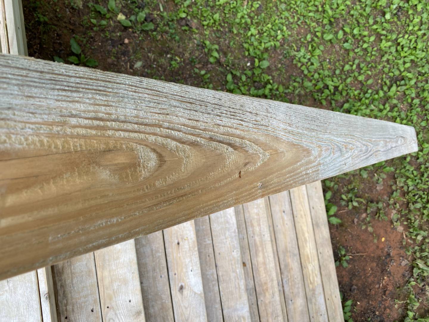 The deck (and porch, I think) are treated pine. I've noticed a mildewy smell on the deck in the last couple of years, which seems odd because it gets so much sun (it is a very humid area, but the smell is relatively new). The porch mostly smells like cigarettes.