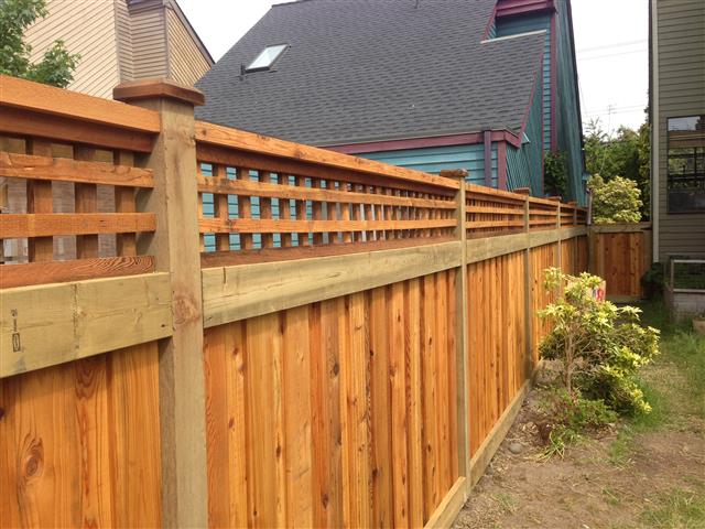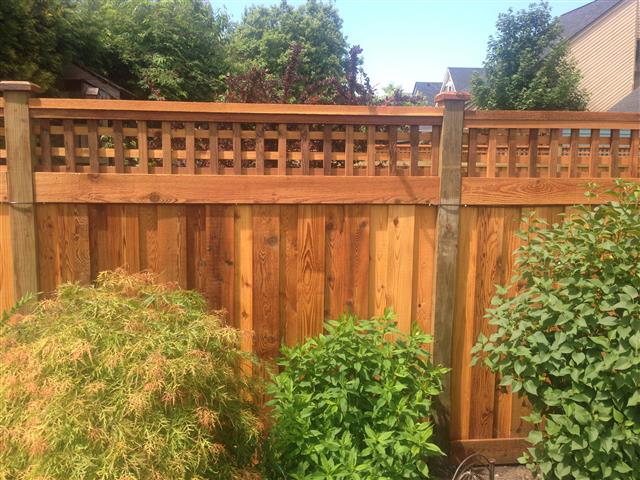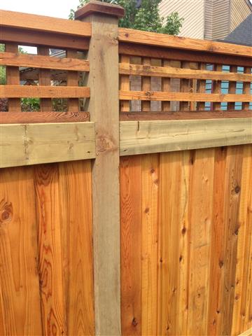 Here are some final pictures of our fence. The project got delayed to the spring because the wood arrived wet and I couldn't dry it in time to stain it before winter.