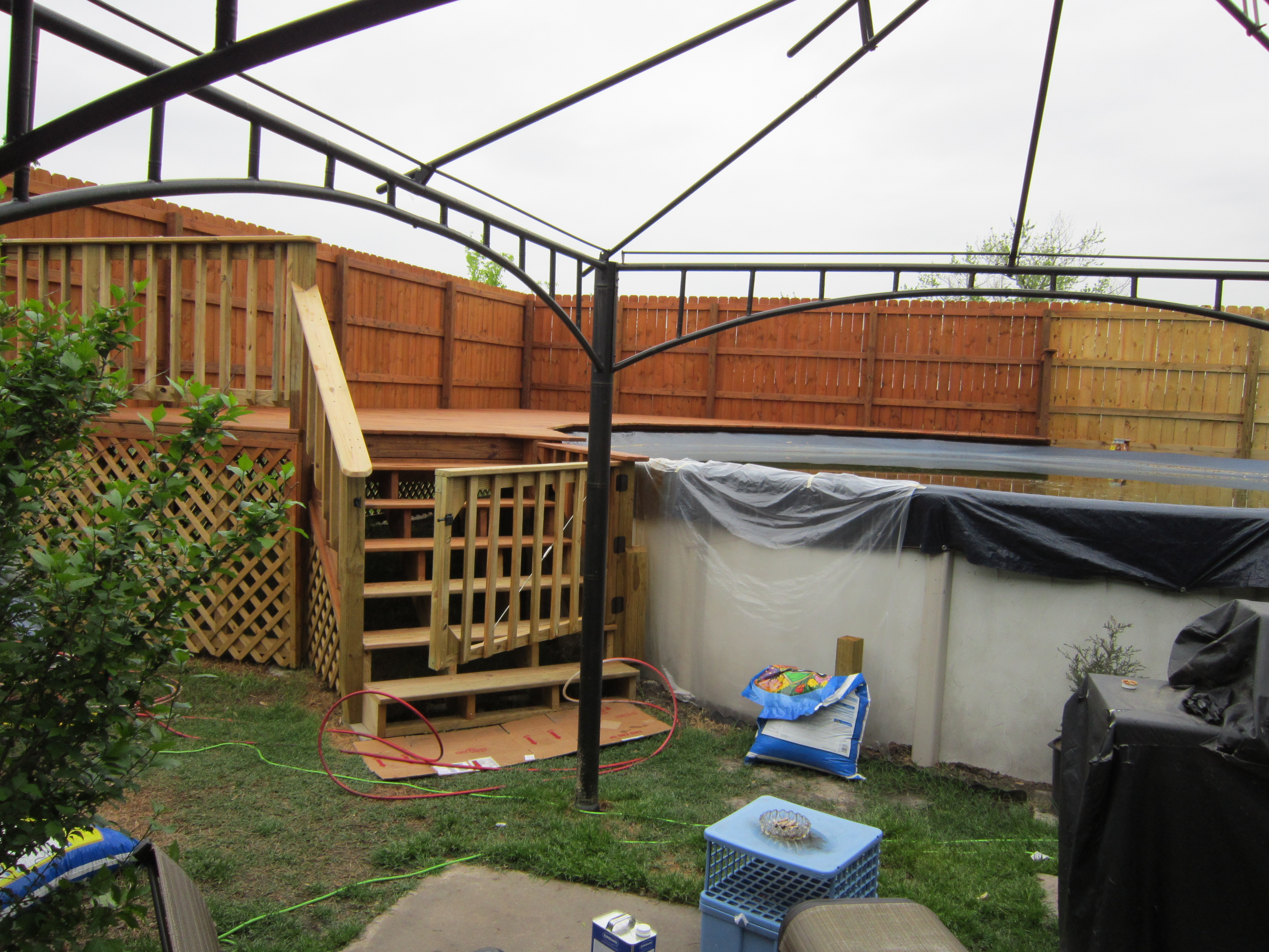 Overall I am pretty satisfied. I did have a hard time getting stain between the slats even after spending extra effort and letting the pressure treated pine dry for almost two months. Since I over sanded it, I had to go with two coats on the floor although one coat had been recommended for a new deck.